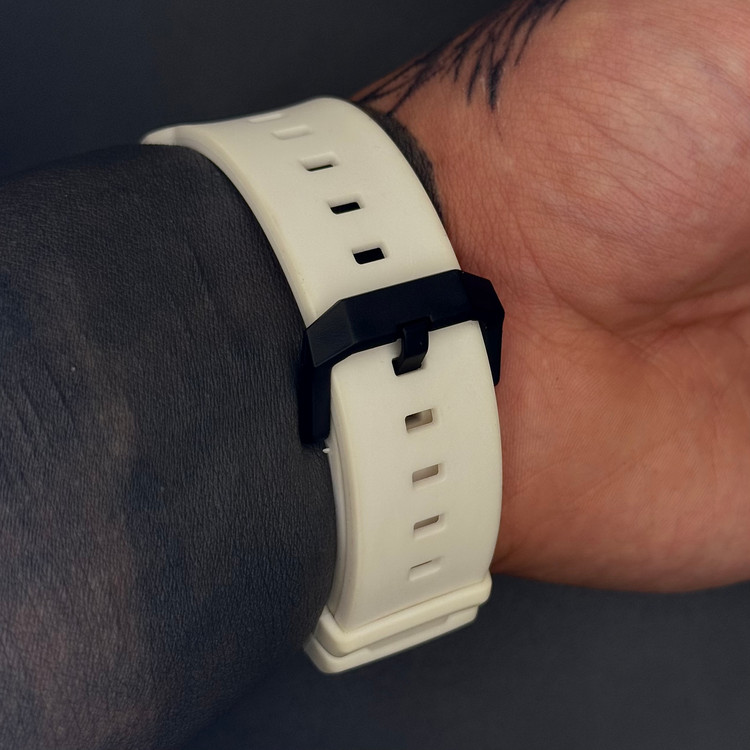 بدنه و بند این ساعت از جنس رزین و سیلیکون سفید ساخته شده که علاوه بر ظاهر زیبا، وزن سبک و راحتی خوبی روی مچ دست ایجاد میکند. صفحه ساعت ترکیبی از عقربههای آنالوگ و نمایشگر دیجیتال است که علاوه بر نمایش زمان، امکانات بیشتری را در اختیار کاربر قرار میدهد.