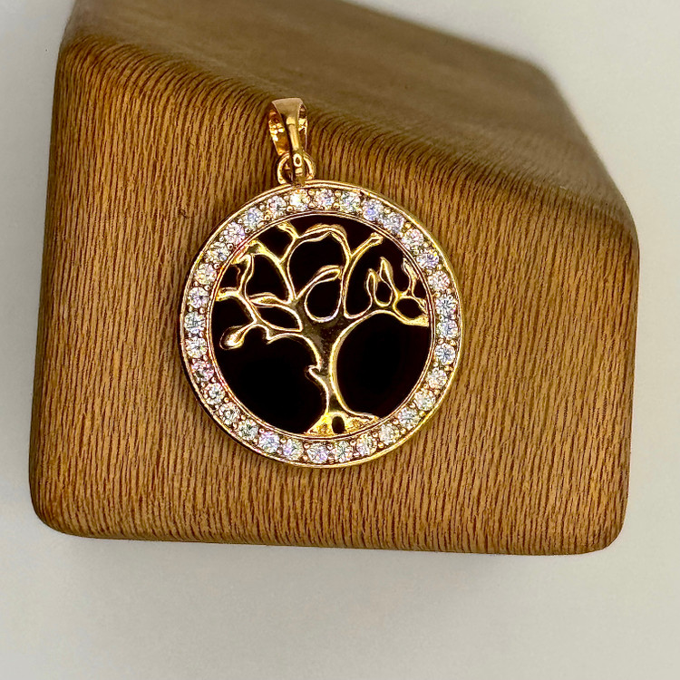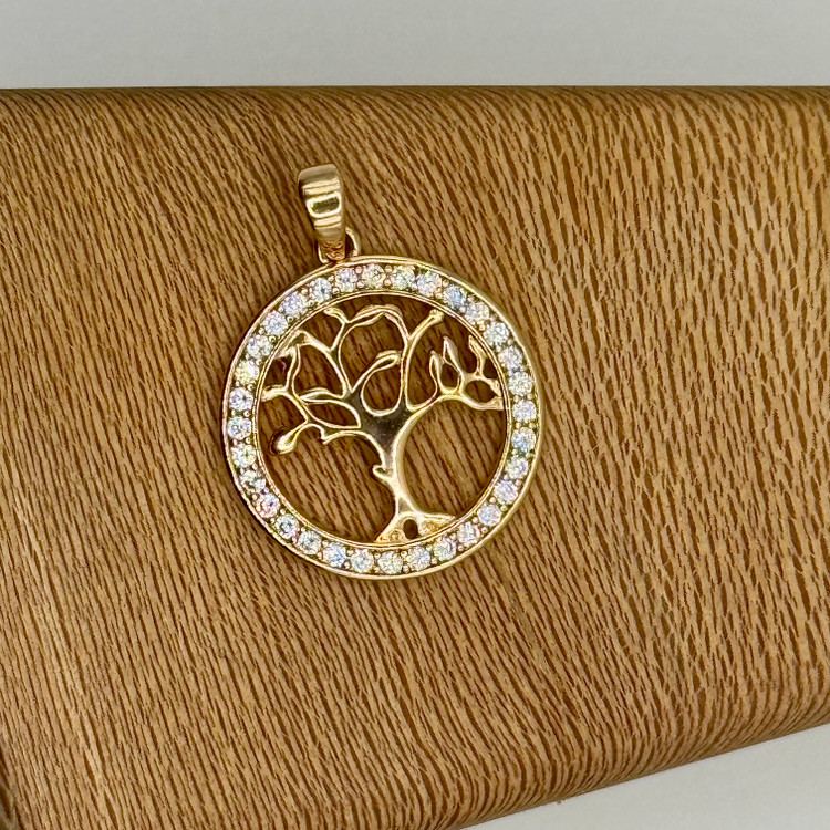 ترکیب قاب دایرهای با نگینهای درخشان و طراحی ظریف درخت در مرکز پلاک، ظاهری شیک و هنری ایجاد کرده که به راحتی با زنجیرهای مختلف ست میشود.
